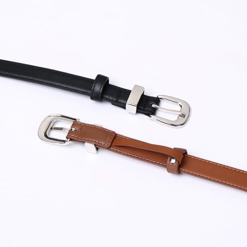 0.78" Women's Skinny Leather Belts for Ladies Thin Strap for Jeans Dress Pants with Fashion Bright Silver Buckle 6