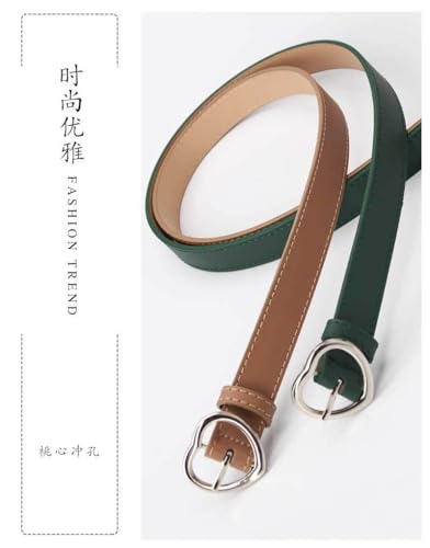Xiao Hua Women's PU Leather Belt - Heart Button Belt, Versatile for Dresses & Jeans, 41in, Stylish & Easy Match(Coffee) 2