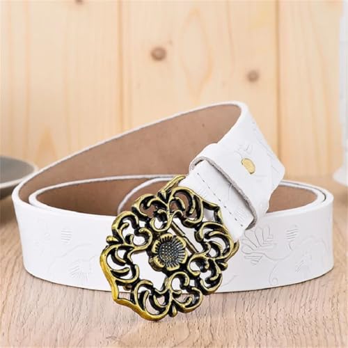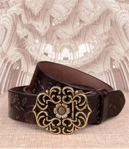 Women’S Casual Split Leather Pin Buckle Belt Vintage Printed 3.3Cm Waistband For Jeans Trousers 5