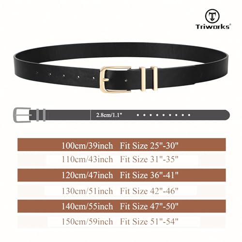 • Adjustable Women Belts - Our fashion ladies belts come in a comprehensive range of sizes (S-XXXL), fitting waist measurements from 25" to 57". Women leather belt with a width: 1.1"/2.8cm, it offers a sleek look while giving you a snug and great fit.