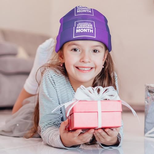 HOT ! I Wear Purple for Pancreatic Cancer Awareness Kids Beanie Hat for for Girls Boys Children Cap Winter Knitted Chemo Cancer Headwear Accessories Gifts Decoration