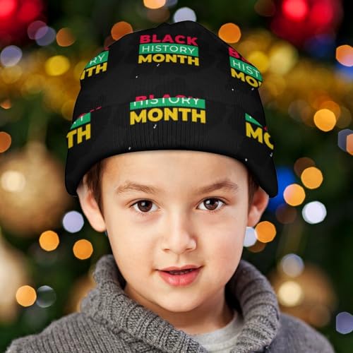 HOT ! Happy Black History Month 2022 Kids Beanie Hat for for Girls Boys Children Cap Winter Knitted Chemo Cancer Headwear Accessories Gifts Decoration