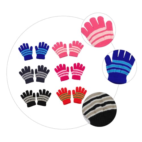 6Pairs Winter Gloves Full Finger Knitted Warm Mittens for Boys Comfortable for Cold Weather for Ages 5