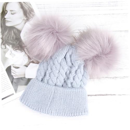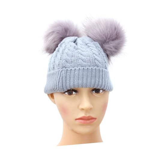 HOT ! SAFIGLE Double Hairball Twisted Knit Beanie Hat for Winter Soft and Warm Crochet Cap for Boys and Adorable Grey Design for Cold Weather
