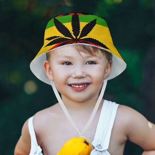 Rastafari Flag with Cannabis LeafChildren's Bucket Hat for Boys and Girls, Breathable Summer Beach Hat50cm 6