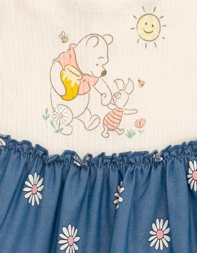 Disney Winnie The Pooh Floral Baby Girls Chambray Dress and Diaper Cover Outfit Set Newborn to Infant 6