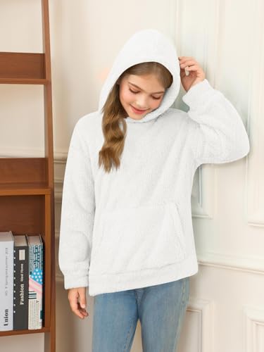 Haloumoning Toddler Girls Fuzzy Fleece Hoodies Baby Kids Warm Pullover Hooded Sweatshirt with Pockets 4