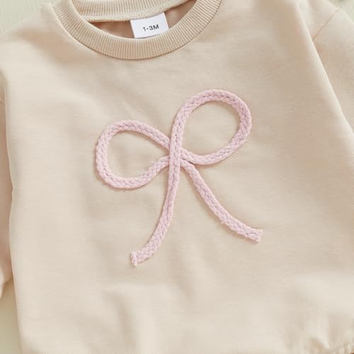 Newborn Baby Girl Fall Outfit Bow Oversized Sweatshirt Bubble Romper Long Sleeve Sweater Bodysuit One-Piece Jumpsuit 3