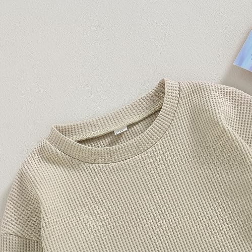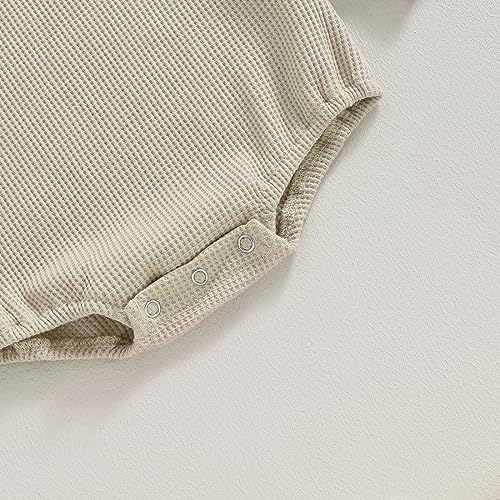 Baby Boy Girl Crewneck Sweatshirt Romper Waffle Knit Long Sleeve Bubble Romper Oversized Sweater Bodysuit Tops 6
