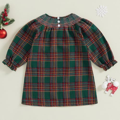 Toddler Smocked Christmas Dress Baby Girl Christmas Outfit Vintage Princess Plaid Dresses Cute Clothes 3