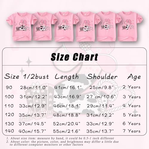 • Size: Toddler baby girl summer western cowgirl birthday tshirt, perfect gift for 2 years old cowgirl birthday gift tshirt, 3rd baby girl western birthday tshirt, 4th birthday shirt cowgirl, 5th western girl birthday shirt, 6 years old girl western birthday graphic tees, 7 years old cowgirl birthday tee shirt. Please choose appropriate size according to the specific size chart.