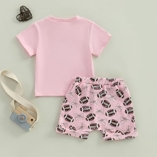 • Features: Toddler girl summer outfits, letter print, crew neck, short sleeve t shirt tops maching with cute football bow print elastic waist shorts, football baby girl outfit, your little one will receive many compliments wearing them