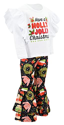 Unique Baby 2 Piece Girls Double Bell Bottom Leggings Outfit with Long Sleeved Shirt Kid and Toddler Clothes Set 6