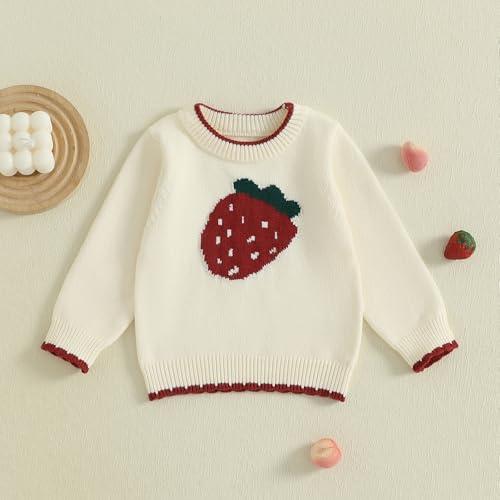 Toddler Strawberry Sweater Baby Girl Winter Clothes Strawberry Knit Pullover Long Sleeve Knit Sweater Fall Outfits 6