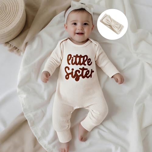 Infant Baby Girl Fall Outfit Sweatshirt Romper Little Sister Lil Sis Long Sleeve Jumpsuit Onesie Newborn Winter Clothes 7