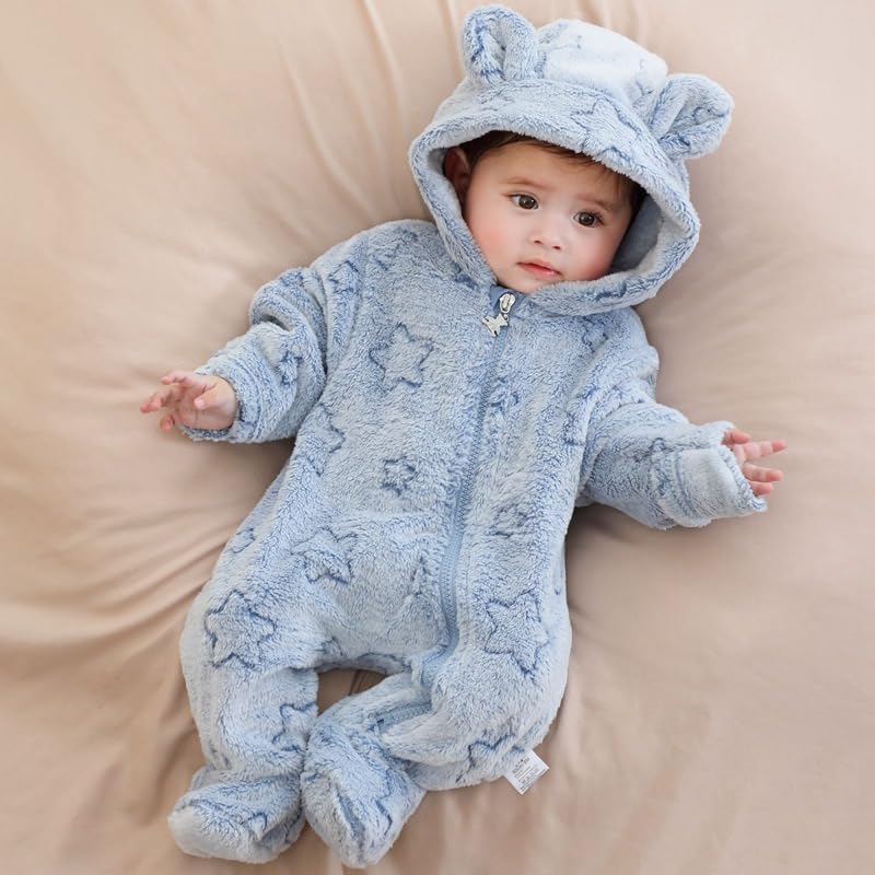 Newborn Winter Snowsuit Baby Girl Boy Bear Ear Fleece Hooded Romper Infant Footie Jumpsuit Outwear Coats 3