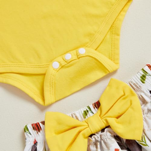 KMBANGI Newborn Toddler Baby Girl Farm Outfits Ruffle Sleeves Chick Smocked Romper Tutu Skirt Stockings Headband Cute Clothes 4