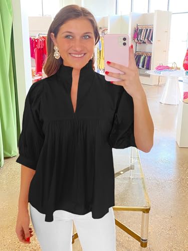 Cicy Bell Womens Puff Sleeve V Neck Blouse Babydoll Peplum Tops Dressy Casual Pleated Loose Fit Shirts 6