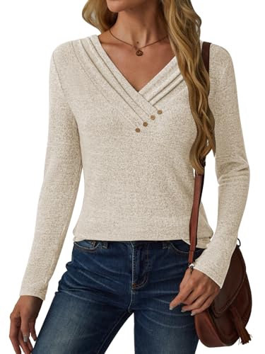 • 【Core Design】Elegant V-neck tunic tops with long sleeves, feature decorative buttons, basic solid colors, loose fit, light weight designed to be flattering for spring, fall and winter wear.