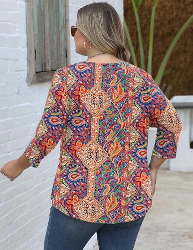 TFSDOD Womens Plus Size Tops 3/4 Length Sleeve Blouses Crew Neck Shirts Casual Loose Tunic Tops 1X-5X 4