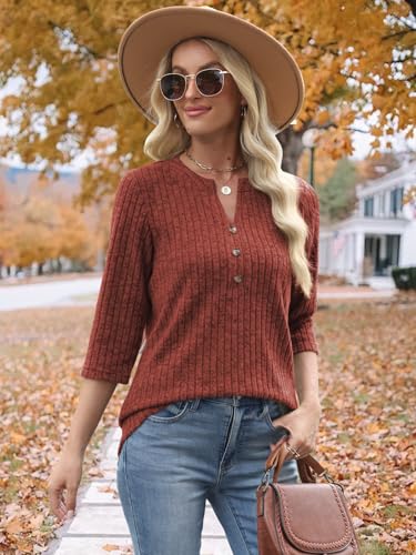 • Design: Features a classic Henley neck with decorative fixed buttons, giving this womens 3/4 sleeve t shirt a casual yet refined vibe.