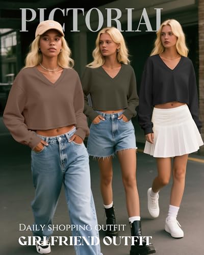 More information about Ficerd 3 Pack Women's Crop Long Sleeve Tops V Neck Loose Cropped T Shirts Drop Shoulder Casual Basic Fall Winter Boxy Tees