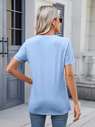 TICTICMIMI Women's V Neck Short Sleeve Tops Button Down Casual T Shirts Basic Dressy Tees 5