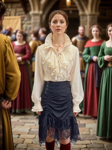 Womens Victorian Vintage Long Sleeve Shirt Ruffle Stand Collar Blouse Gothic Medieval Tops 4