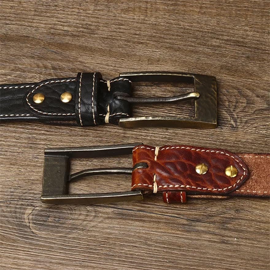Pohullan Mens 3.8cm Belts Retro Thick Leather Belt Brass Buckle Casual Jeans Belts 3