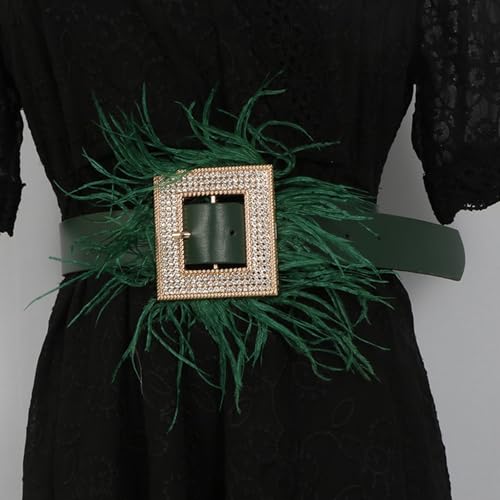 HOT ! Wide Waist Belt Punk Chain For Stylish Cowgirl Rhinestones Feathered Buckle Trendy Waistband Waist Chain Belt Waist Accessory