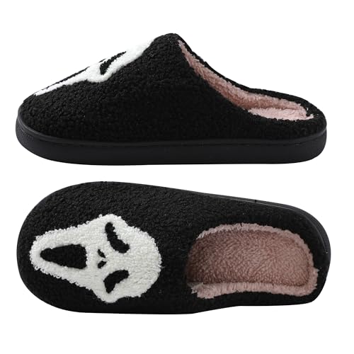 Halloween Slippers for Women Men, Soft Plush Fuzzy Winter holiday slippers, Retro Cozy House Slippers, Comfy Bedroom Christmas Slippers Indoor Outdoor Shoes 7