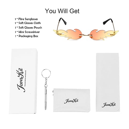 JOVAKIT Fire Flame Sunglasses for Women Men Retro Vintage Rimless Sun Glasses Fire Shaped Frameless Eyeglasses UV Protection 6