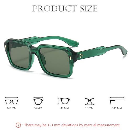 More information about Vintage Square Sunglasses for Men Women Trendy Chunky Rectangle Frame Rivet Design Black Shades UV Protection