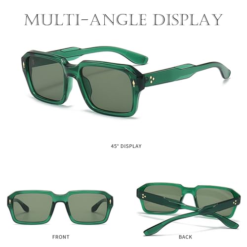 Vintage Square Sunglasses for Men Women Trendy Chunky Rectangle Frame Rivet Design Black Shades UV Protection 6