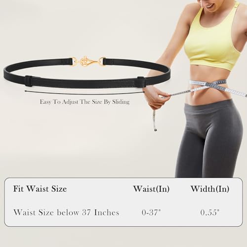 XZQTIVE Leather Skinny Belt for Women Adjustable Thin Waist Belt Gold Buckle for Dresses Coats Jeans 6