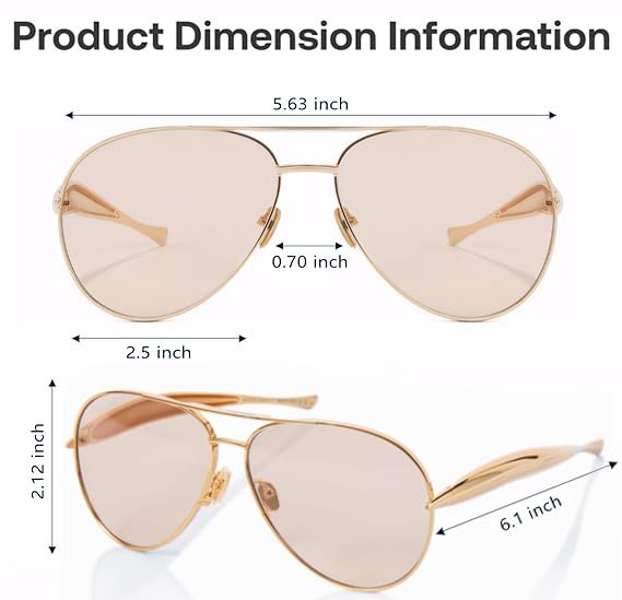 • Retro 70s-Inspired Oversized Aviator - Channel iconic 1970s elegance with bold, featuring gold-accented chunky polished metal construction, retro aviation heritage through exaggerated teardrop lenses and dual-bridge detailing. This bold update preserves 1970s' fearless glamour in contemporary proportions.