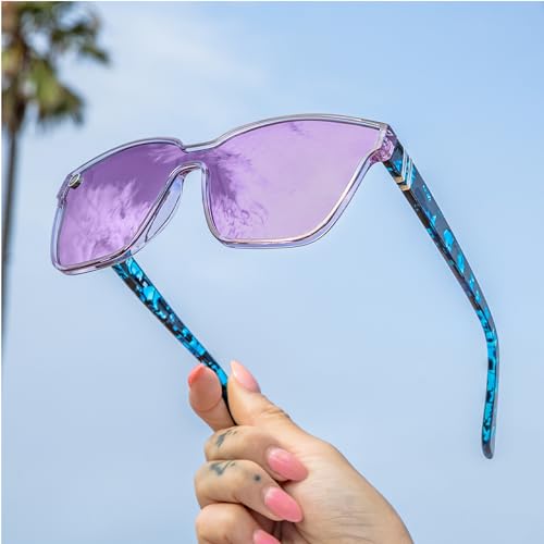 • Holding Back is Passé: Drivemewild Lives Forward with a semi-transparent lilac frame encircling a lightly contrasting lavender lens; the temples feature our azure "Gulf Stream" and black tortoise print, all in a gloss finish for maximum effect