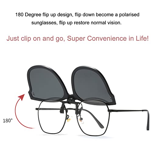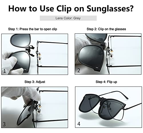 • High Quality Material - This clip on sunglasses is made from high quality polarized lenses, 180 Flip up Design, soft rubber clip.