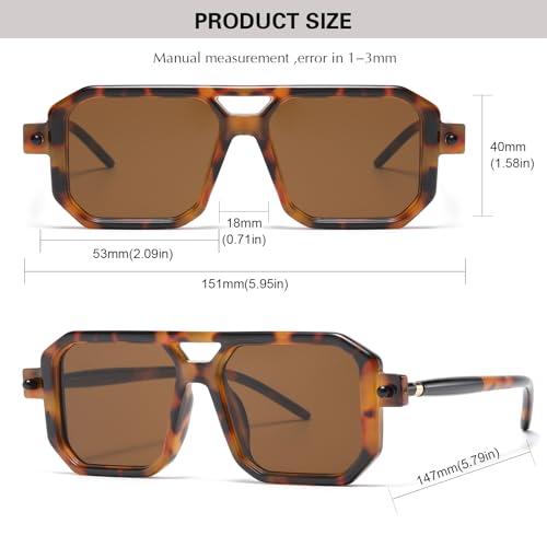 • **Product Dimensions**: These sunglasses have a lens width of 53mm (2.09''), lens height of 40mm (1.58''), temple length of 147mm (5.79''), nose bridge of 18mm (0.71''), and frame length of 151mm (5.95''). Please note that there may be a 1-3 mm deviation due to manual measurement.