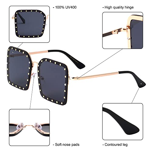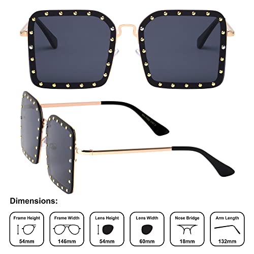 Queens Riveted Large Rimless Square Studded Sunglasses Men Women RH-7082 1