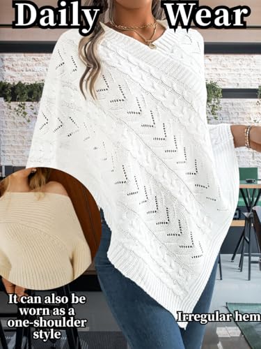 Women Knit Poncho Sweater, Irregular Hallow Out Cape Top Casual Fashion, Lightweight Knitted Shawl Wraps Fall Winter 5
