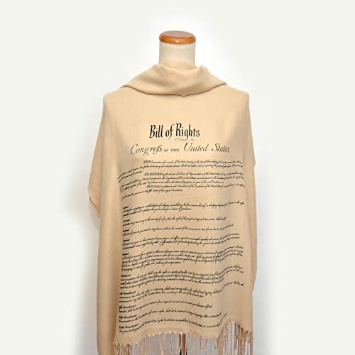 • US Constitution and Bill of Rights scarf/ shawl. The Bill of Rights (the first ten amendments to the United States Constitution) AND United States Constitution ( first page) printed on soft , beige colored acrylic viscose shawl.