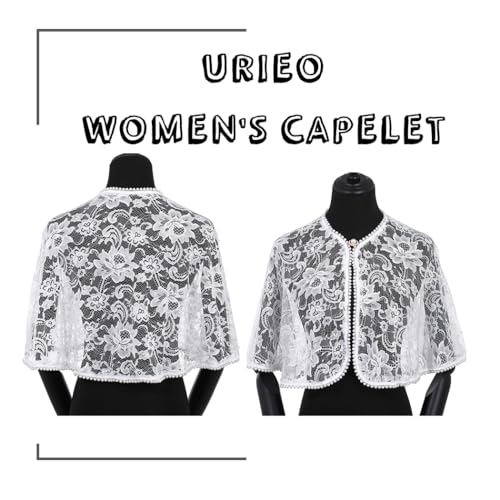HOT ! Urieo Bridal Lace Cape Shawl with Pearl Trim, White Floral Wedding Capelet, Wraps Shrug for Evening Dress