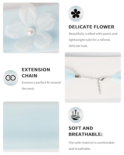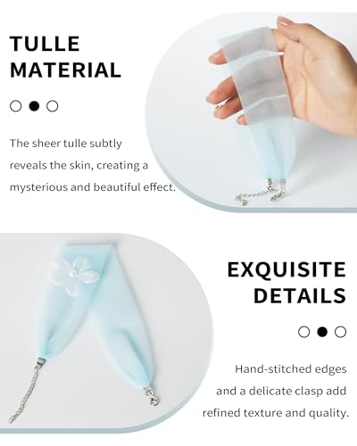 Choker Necklace for Women, Tulle Sheer Pearl Neck Scarf Light Soft Fashion Scarves Neckerchief 5