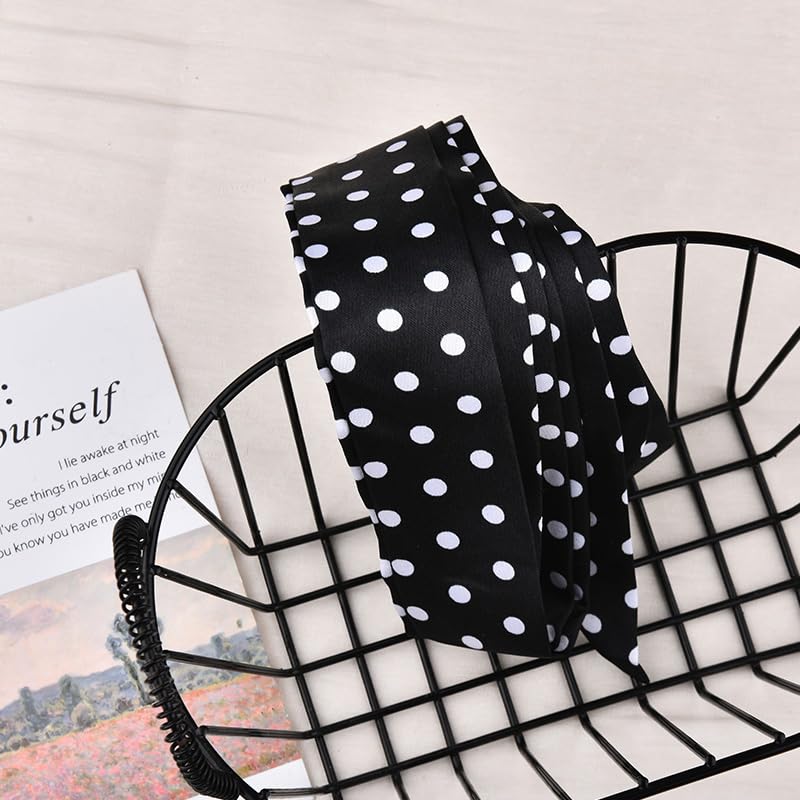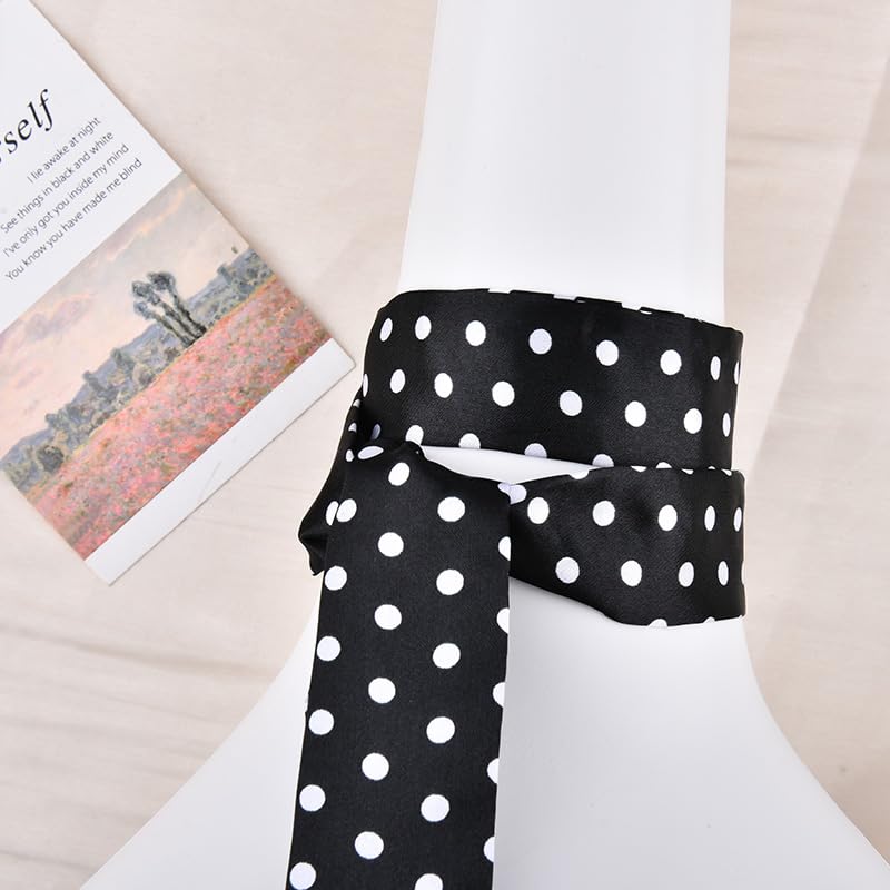 Black Polka Dot Skinny Scarf for Women Summer Silk Neck Scarf Long Skinny Hair for Women Black And White Polka for Hair Ribbon Summer Head Dot Neckerchief 5