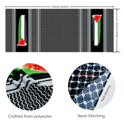 • Material: Crafted from polyester fiber, this Keffiyeh offers the best of comfort and longevity. Its natural breathability makes it ideal for all seasons, while the durability of cotton ensures it stays in perfect shape and condition for years.