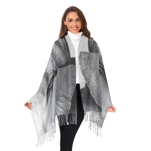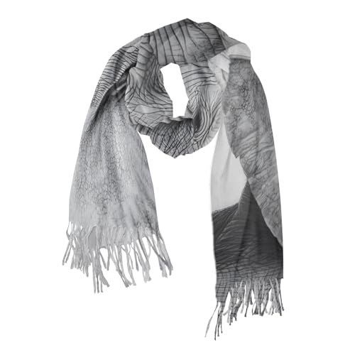 Women's Cashmere Feel Scarf-Elephant Drawing, Single-sided Print Pashminas Shawl Wrap Large Size with Tassels 7