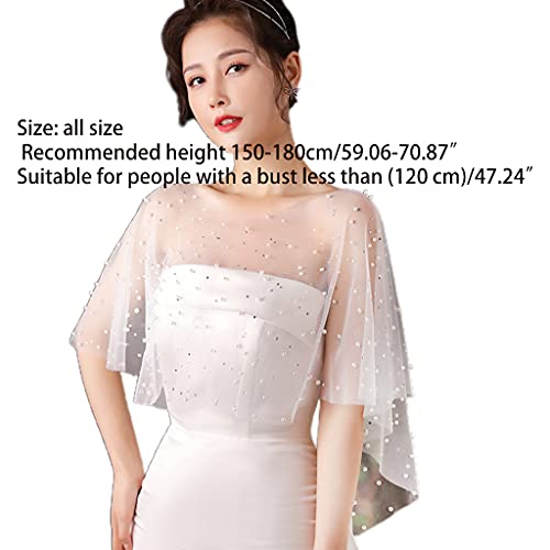 Women Sheer Pleated Wedding Shawl Rhinestone Pearl White Capelet Bolero Shrug White, 150-180cm(59.06-70.87in) 6