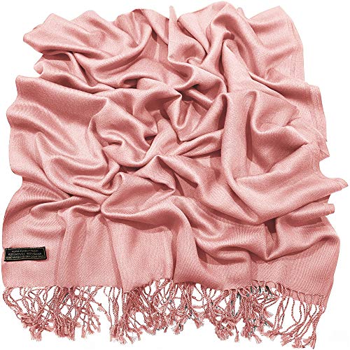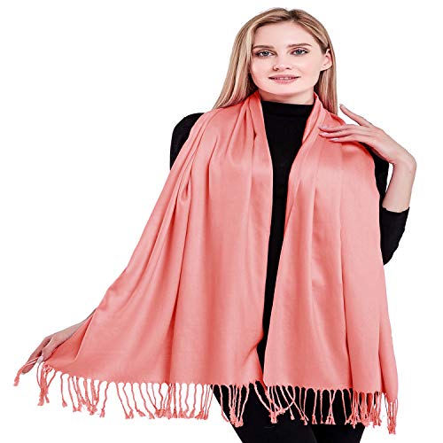 More information about CJ Apparel Coral Pink Solid Color Pink Tassels Design Nepalese Shawl Seconds Scarf Wrap Stole Throw Head Wrap Pashmina Hand Made in Nepal New Pashmina New