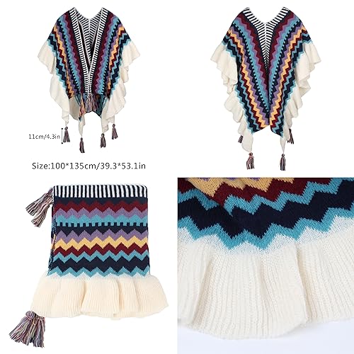 More information about Women Wave Stripes Fall Winter Warm Cashmere-like Shawl Wrap Cardigan Open Front Poncho